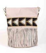 El bolso Karoo encarna la esencia de la sofisticación con un toque bohemio. Elaborado completamente en cuero Napa de la más alta calidad, garantiza una durabilidad y elegancia excepcionales. Su parte delantera está decorada con delicados bordados geométricos en tonos contrastantes, como el negro, blanco y dorado, que añaden profundidad y carácter al diseño. Los flecos en la base del bolso aportan movimiento y frescura, evocando las tendencias boho-chic. La combinación de texturas entre el cuero suave y los detalles bordados lo convierten en una pieza imprescindible para aquellos que valoran la moda y el estilo. Perfecto para llevar lo esencial con elegancia y personalidad.