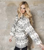 El cárdigan boho Bella en tonos grises y blancos está confeccionado al 100% en IKAT. Esta prenda acolchada proporciona comodidad en los frescos días de otoño. Nuestra línea completa está hecha exclusivamente en IKAT y ofrece una variedad de piezas, desde chalecos hasta vestidos cruzados y chaquetas, todas elaboradas a mano con un estilo único.