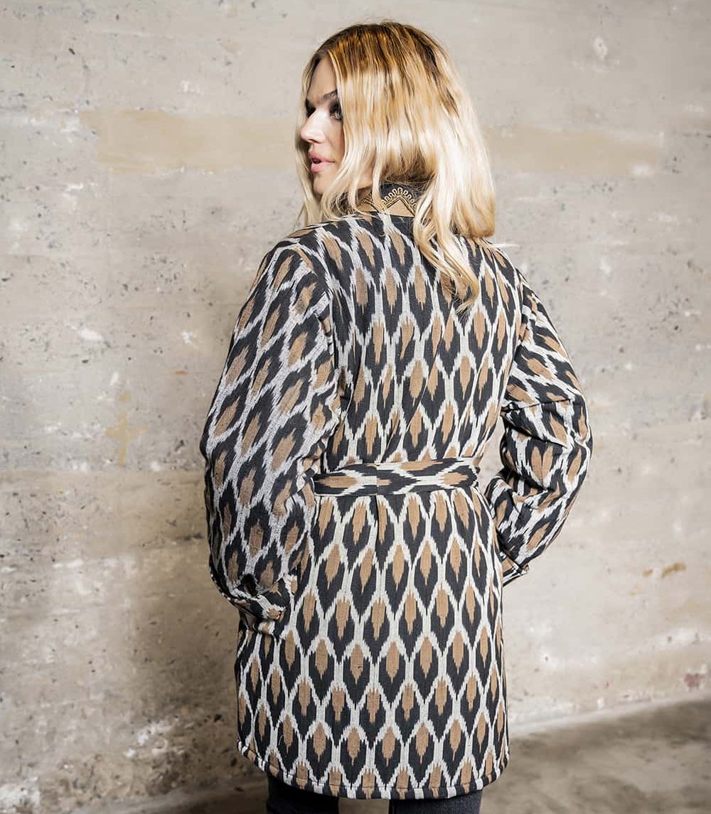 El cárdigan boho Bella en tonos negros está confeccionado al 100% en IKAT. Esta prenda acolchada proporciona comodidad en los frescos días de otoño. Nuestra línea completa está hecha exclusivamente en IKAT y ofrece una variedad de piezas, desde chalecos hasta vestidos cruzados y chaquetas, todas elaboradas a mano con un estilo único.