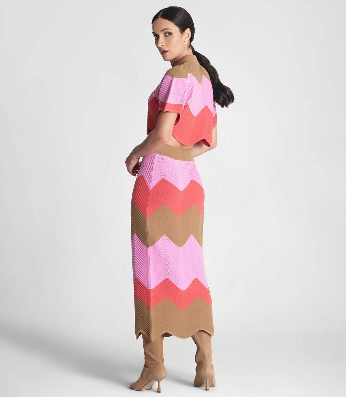 CARDIGAN ZIG ZAG ROSA Y CAMEL